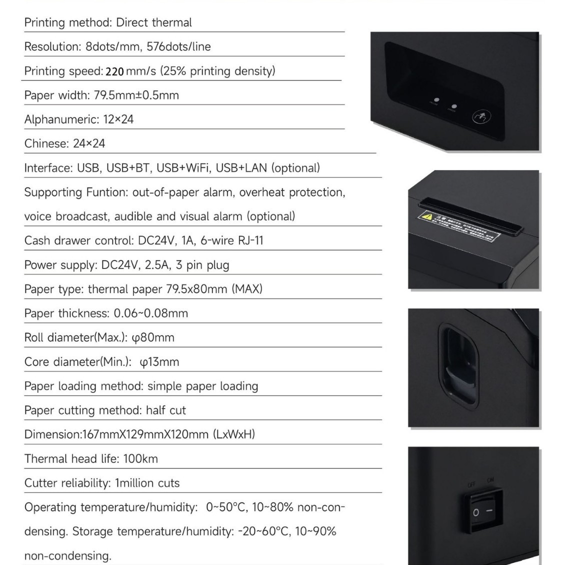 Supporting Function: out-of-paper alarm, overheat protection, voice broadcast, audible and visual alarm (optional)